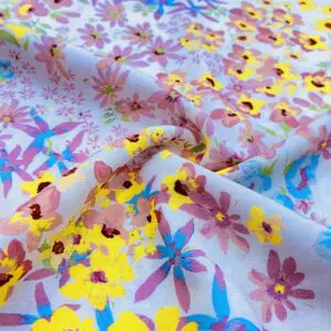 Çıtır Çiçek desenli İpek viskon kumaş; yazın tüm renklerini içinde barındıran cıvıl cıvıl genç ruhlara hitap eden bir üründür. Çok yönlü bir kumaş olması diğer kumaşlarla kolay kombin olmasını sağlar. İç göstermez emiciliği yüksek diğer kumaşlara nispeten hafif yumuşak ve rahat bir kumaştır.