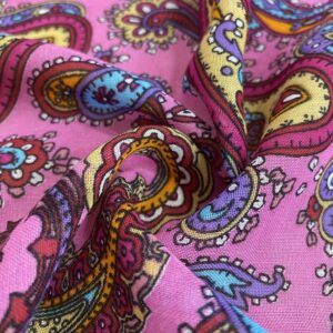 Pembe Şal Desenli Tülbent Kumaş 50 şeffaf görünüme sahip yapısı ile bluz, elbise, gömlek yapımında kullanılan terletmeyen bir kumaştır. Pembe fon üzerindeki şal desenleri oldukça dikkat çekicidir ve belki de tülbent kumaşta en şık desenlerden birisidir. Turistlik bölgelerde hemen hemen her butikte rastlayacağınız bu ürün renk renk desenleri ile oldukça rağbet gören bir kumaştır.