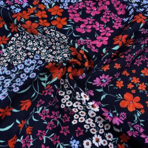 Renkli Çiçek Desenli Pamuk Viskon Kumaş 462 isimli bu kumaş türümüz, rahatlığından ve zarafetinden vazgeçemeyen kadınların tercihidir. Renk renk çiçekli desen giysiler için en uygun kumaş çeşitlerinden birisidir. Esneklik oranı yüksektir o nedenle büyük beden grubu için sıkça tercih edilir. Terletme yapmaması, cilde nefes aldıran yapısı ile yaz aylarının en çok tercih edilen kumaşıdır.