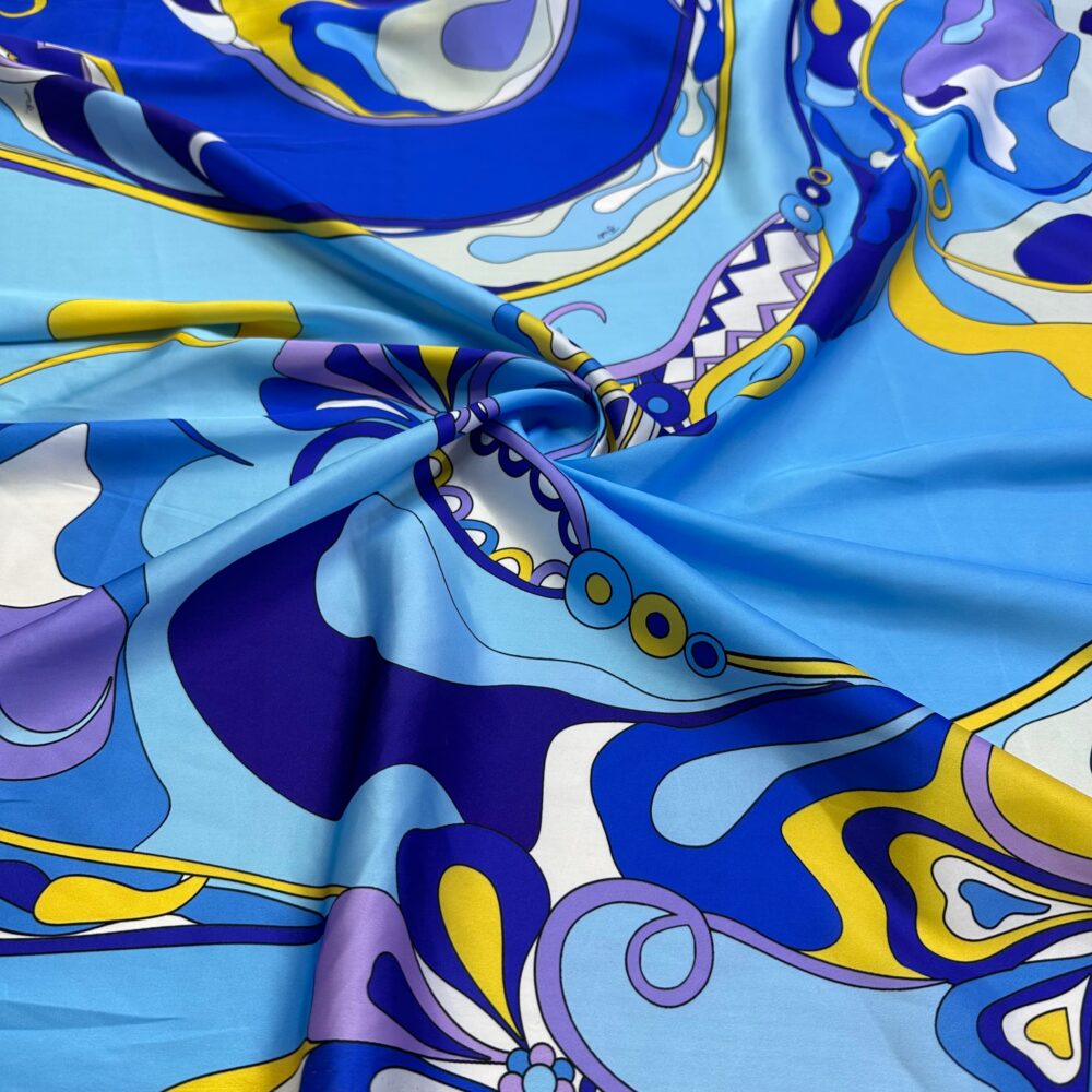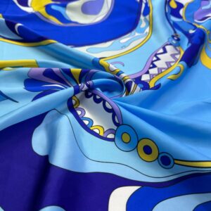 Mavi Zincir Desenli İpek Saten Kumaş 131