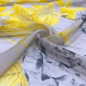 Sarı Çiçekli Şifon Kumaş