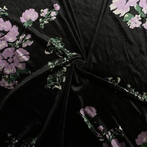 Siyah Üzerine Pembe Çiçekli İpek Kadife Kumaş 31