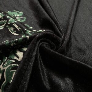 Siyah Üzerine Pembe Çiçekli İpek Kadife Kumaş 31 yıpranma yapmayan, uzun yıllar tekrar tekrar giyebileceğiniz giysilerin kumaşıdır. Düz renklerinin yanı sıra düz zemin üzerine işlenen çiçek desenleri kadife elbiselerde şık bir görünüm elde etmenizi sağlar. Klasik giyimden hoşlananların özellikle değerlendirebileceği bir kumaş türüdür. Kalın yapılı, vücudu sıcak tutan bir kış kumaşıdır.