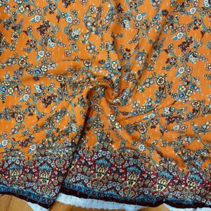 Turuncu Simli Eteği Sulu İpek Viskon Kumaş 452