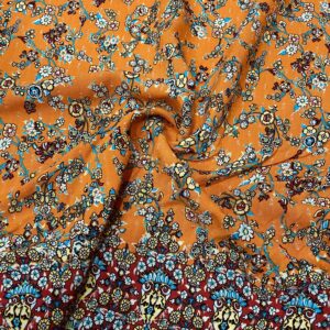 Turuncu Simli Eteği Sulu Pamuk Viskon Kumaş 452 isimli bu ürünümüz en çok doğal yapısıyla ön plana çıkmaktadır. Tekstilin sektörünün hemen her alanında imzasının olduğunu görmek mümkün. Bunda kesinlikle yüksek kalitede olmasının ve cildi rahatsız etmemesinin payı büyük. Kayın ağacındaki selüloz adlı materyalden üretilmektedir. Yaz modasında turuncu rengin simle ahengini elbiselerinize yansıtabilirsiniz.